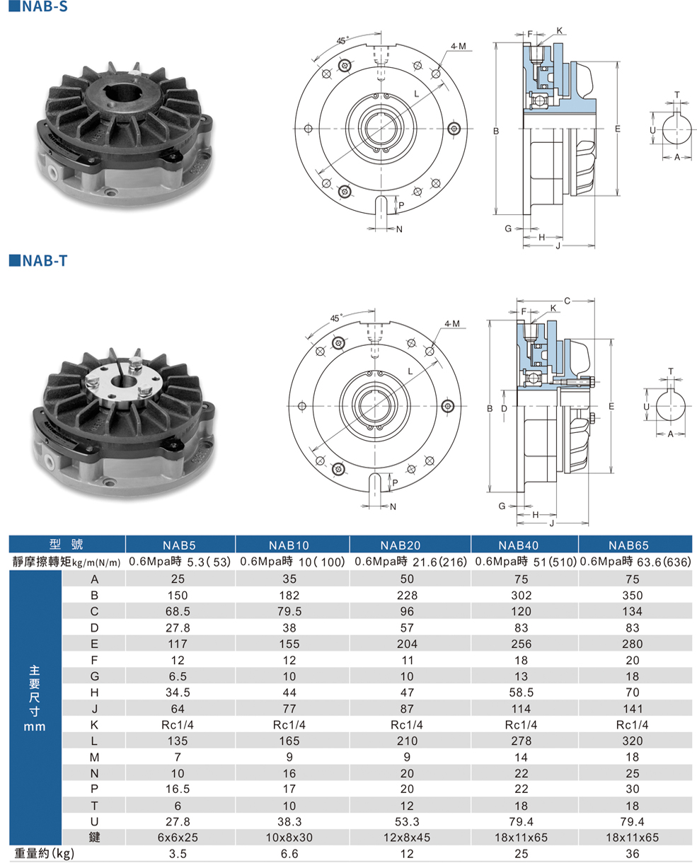 4. NAB型(標準型)空壓通軸式制動器
