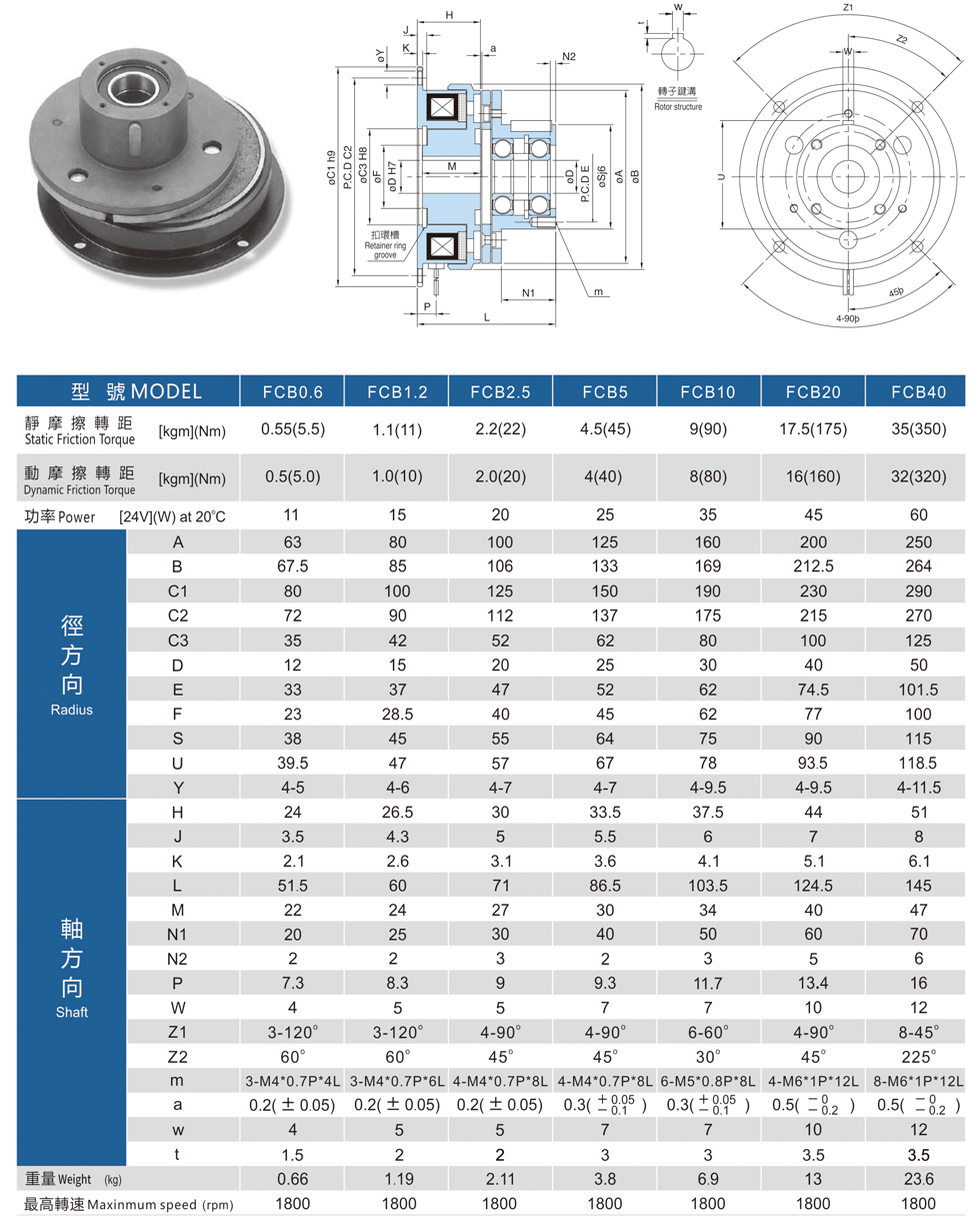 4. FCB型(干式單板)電磁式離合器(附軸承導座)